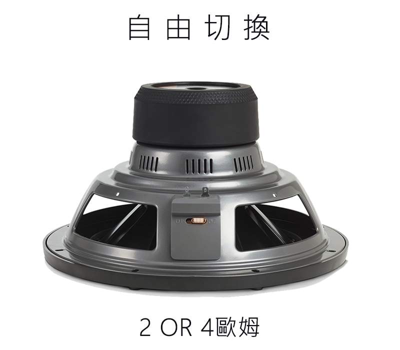 超低音具有獨特的雙阻抗(SSI)開關,可讓您選擇任一負載阻抗選項。利用此專屬功能,只需撥動開關便可將重低音喇叭設為 2或 4 歐姆
