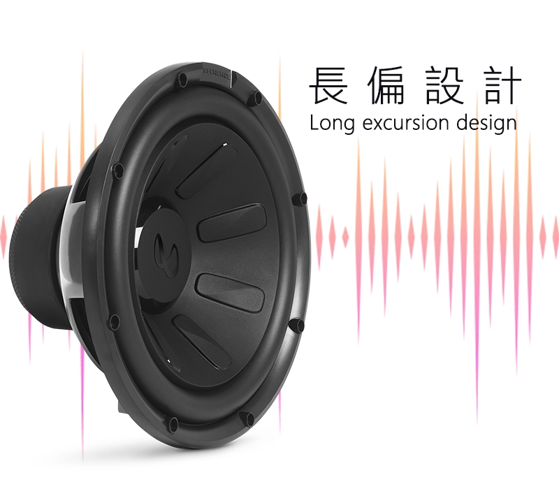 INFINITY低音炮的音盆不僅堅固,而且耐用。Reference超低音喇叭採用獨特的音盆設計,可提供出色的剛性,從而具有持久的性能。