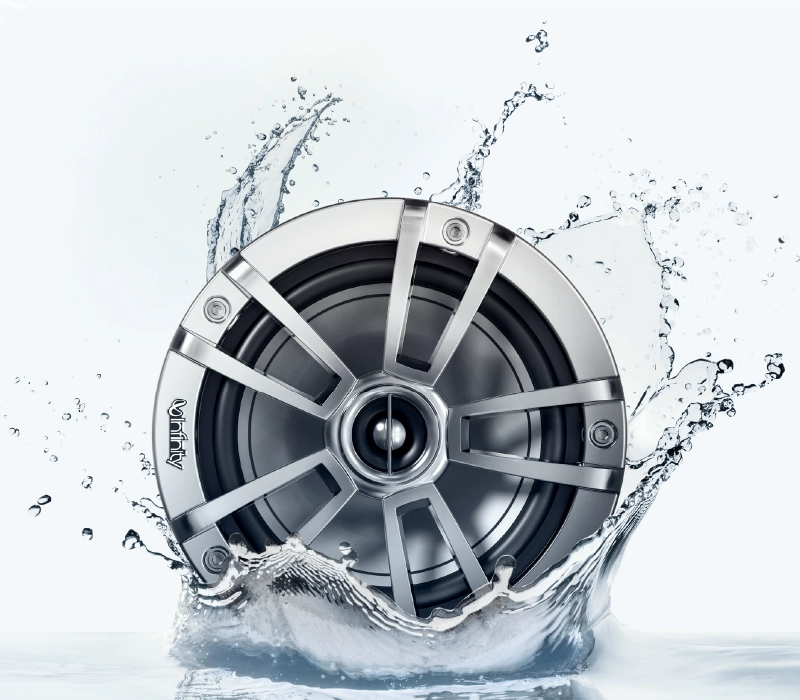 這些完全防水的喇叭不僅可提供 Infinity完美的音質,還具有 RGB 燈光功能,結合聲音與燈光,帶來栩栩如生的感受。